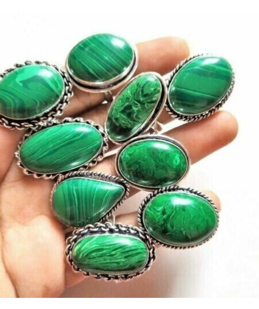 50 PC Malachite Wholesale Lot 925 Sterling Silver Plated Jewelry RGTC-042