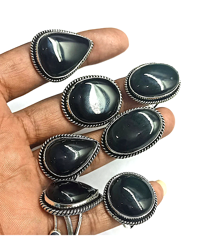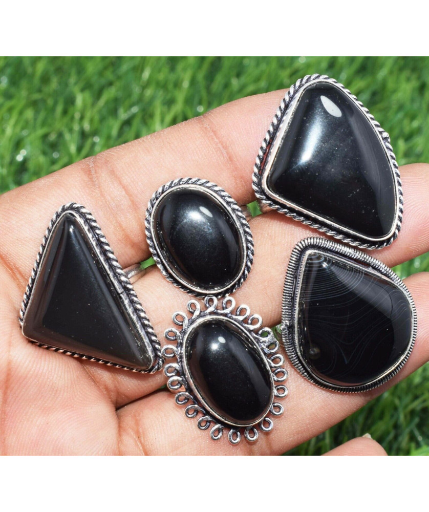 100 PC Black Onyx Wholesale Lot 925 Sterling Silver Plated Jewelry RGTC-050