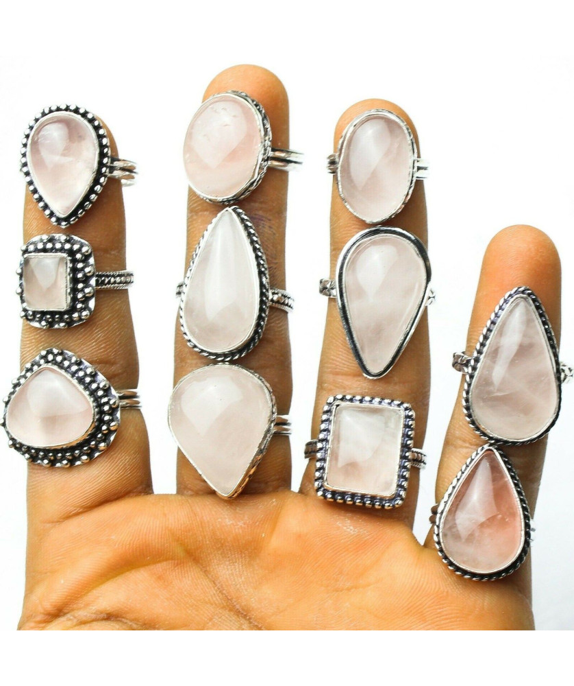100 PC Rose Quartz Wholesale Lot 925 Sterling Silver Plated Jewelry RGTC-056
