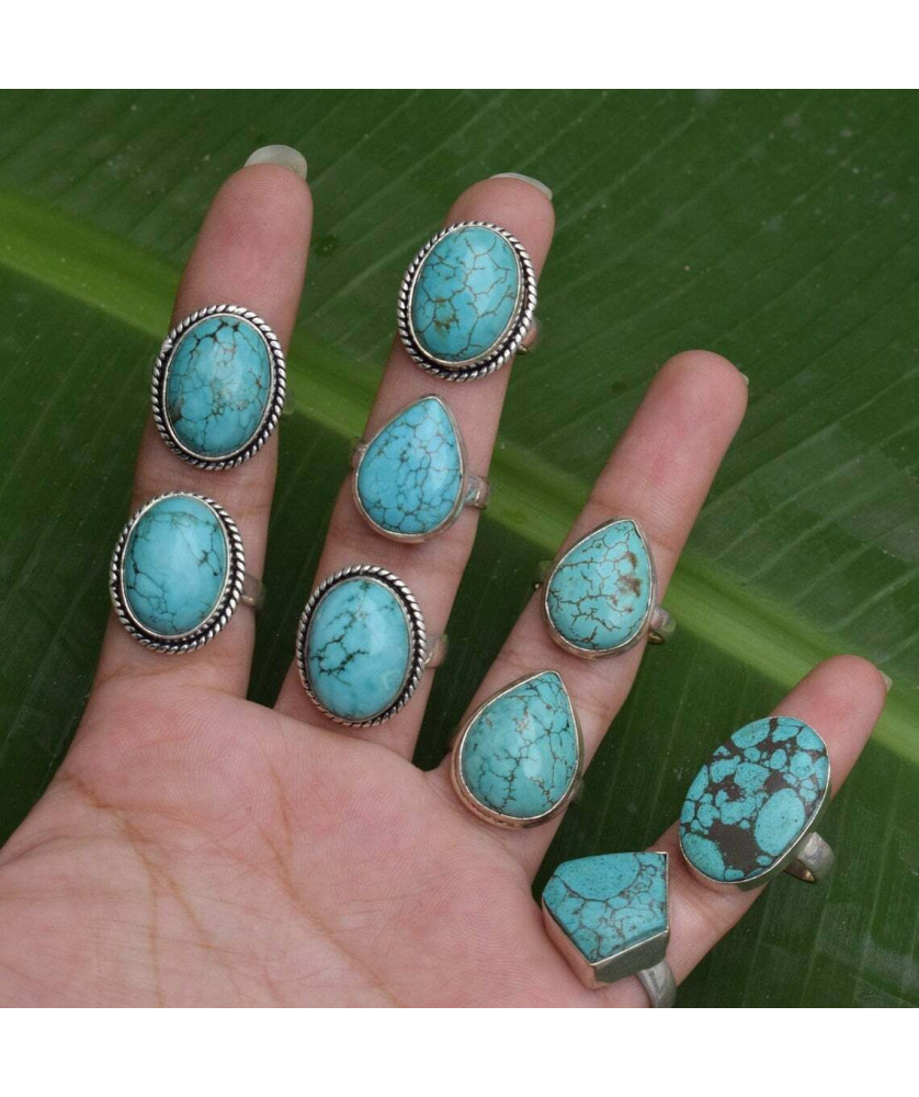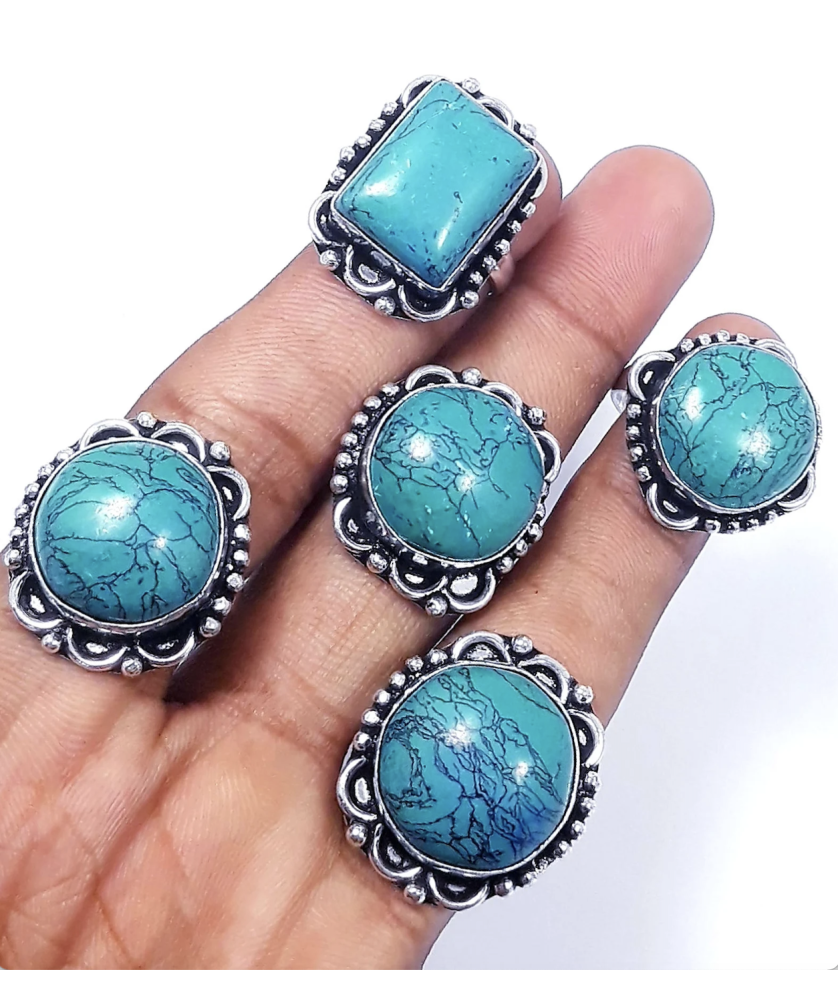 100 PC Turquoise Wholesale Lot 925 Sterling Silver Plated Jewelry RGTC-060