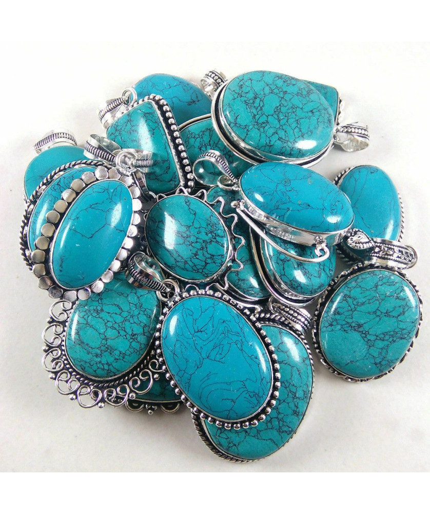 50 PC Turquoise Wholesale Lot 925 Sterling Silver Plated Jewelry PGTC-083
