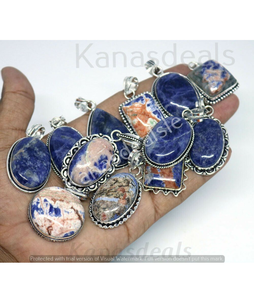 100 PC Sodalite Wholesale Lot 925 Sterling Silver Plated Jewelry PGTC-099